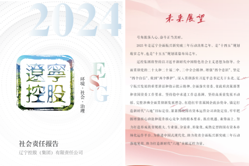 展望未来,辽控集团将完整准确全面贯彻新发展理念,牢牢把握高质量发展首要任务,以责任实践树立国企标杆形象,强化与政府、合作伙伴、员工等利益相关方的沟通,以ESG夯实合规根基、培育绿色动能,助力塑造品牌、构筑长远竞争力,以更实举措推动国有资本运营提质增效,为辽宁全面振兴贡献更多辽控力量。